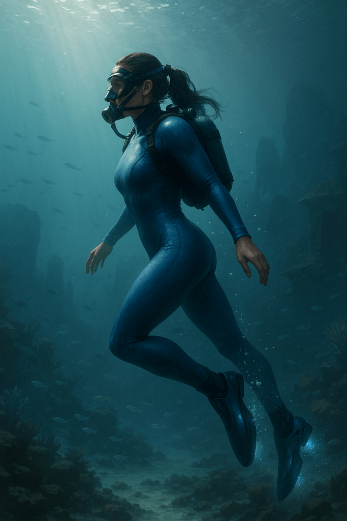 In the world of Fires of Hina, underwater exploration is made possible by a suite of sleek, high-performance gear designed for stealth, endurance, and agility beneath Thalassa’s alien seas. This technology reflects a fusion of marine biology, survival engineering, and deep empathy for the ocean, allowing humans to immerse themselves in the fragile and sacred underwater realms of Thalassa without dominating them.